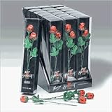 Red Sweetheart Chocolate Rose Gift Box contains two, 3 dimensional roses, each rose 1/2 ounce, premium solid milk chocolate with imprint rose petals in the chocolate. Chocolate roses arrive on 9 1/2 inch stems with silk leaves, in their own gift box.