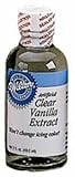 Clear vanilla extract-8 ounces. Wilton-clear vanilla extract. Artificial flavoring for cakes; cookies; frosting and all of your other baking needs. This flavoring is clear so it wont effect your frosting coloring. Shatter proof bottle: 8 fluid ounces in this wholesale bulk cheap discount bottle of vanilla extract.