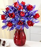 Tulips and Iris: Say "I love you" with this popular flower bouquet full of red tulips and blue iris. Send as a congratulations flower gift or birthday flower gift too. From ProFlowers.