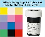 This Top 12 Icing Color Kit includes the top 12 icing colors in 1 ounce containers of icing color gel. This set will enable you to have or blend the 12 most popular colors for your cake decorating designs. colors: Lemon Yellow, Ivory, Buttercup Yellow, Delphinium Blue, Pink, Rose, Violet, Royal Blue, Burgundy, Leaf Green, Black, and Red(no taste). Made to produce deeper, richer colors by adding just a small amount of dye. The concentrated gel formula helps you achieve the exact shade you want without thinning the icing. Produce deep, rich color with just a small amount using this fast-mixing gel. The Wilton exclusive concentrated gel formula was developed to help cake decorators achieve the exact shade desired without changing icing consistency. Certified Kosher