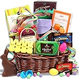 Our colorful Easter Sweets & Treats Gift Basket is a classic collection of cuteness and candy. Your favorite spring chicken will be delighted to receive these gourmet Easter Baskets. Inside are essential and modern Easter candy, including a solid milk chocolate bunny, marshmallow PEEPs, Holland Mints, White Chocolate Key Lime Cookies, Milk Chocolate Orange Sticks, a Milk Chocolate Dipped Sandwich Cookie, Chocolate Dipped Vanilla Bean Cookies, a dark chocolate hazelnut bar, gummy fish, and a Dark Chocolate Smothered Pretzel. We can't forget to mention the plastic Easter Eggs, perfect for storing tiny treats, and classic wicker basket that make this Easter gift an absolute treasure. Remember when you order your Easter Gift Baskets from GourmetGiftBaskets.com you'll be sending nothing but the best.