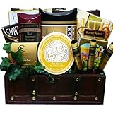Food lovers from near and far will appreciate this gift of fine gourmet food served with classic style in a wooden keepsake gift chest. This distinctive basket features premium Smoked Salmon, 3 Chocolate Cigars, Brie Cheese Spread, Savory Sausage, Foccacia Italian Seasoned Crackers, Cappucino Coffee Mix, Tirimisu filled Pastry Cookies, buttery Snack Pretzels, crunchy Smoked Almonds and decadent rich Chambray French Truffles. It's the perfect gift for corporate gift giving, a thank you, or for your hard to shop for Dad. After the goodies are gone, the handsome wooden gift chest makes great storage or d�cor for any home, den or office. Each gift is crafted with attention to detail, tied with ribbon and includes a personalized gift message from you to convey your best wishes. An original gift basket arrangement designed just for you by Art of Appreciation Gift Baskets.