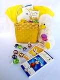 Yellow Plastic Tote Easter Bag Filled With Jumbo Block Lindt Chocolate Candy Bars, Plush Stuffed Animal Duck Chick & Premium Filled Milk Chocolate Balls